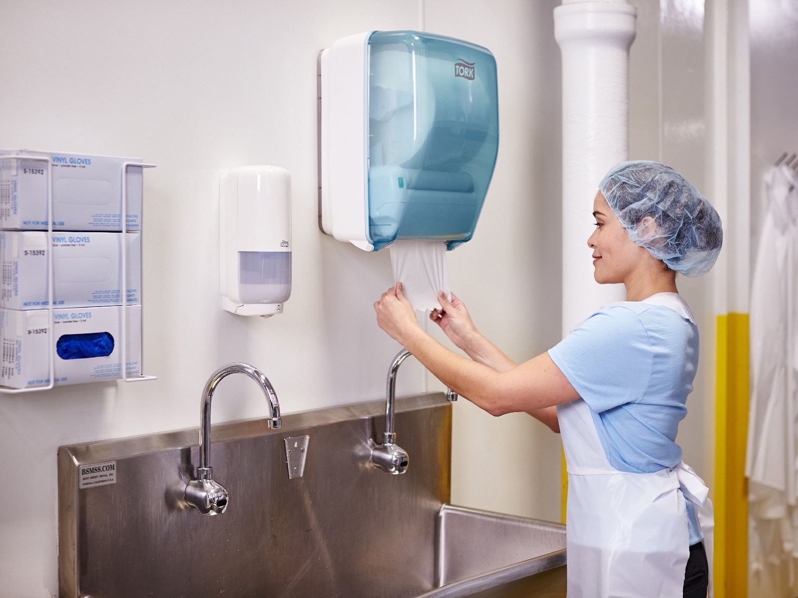 High capacity Tork Washstation System ensures paper hand towels are always available for handwashing. Its durable, water-resistant design keeps refills protected during spray downs, this also means the dispenser doesn’t need to be covered or removed during cleaning, boosting efficiency.