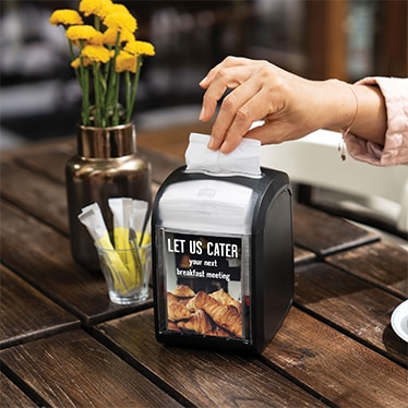 Med Tork Xpressnap® matas en servett i taget, vilket minskar användningen med minst 25 %2
